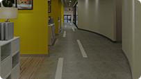 PVC塑膠地板對地面平整度和光潔度要求較高,根據用戶不同地面情況,公司技術人員做自流平施工。自流平水泥倒入地面,可增加地面的強度和光滑度,達到鏡面效果。